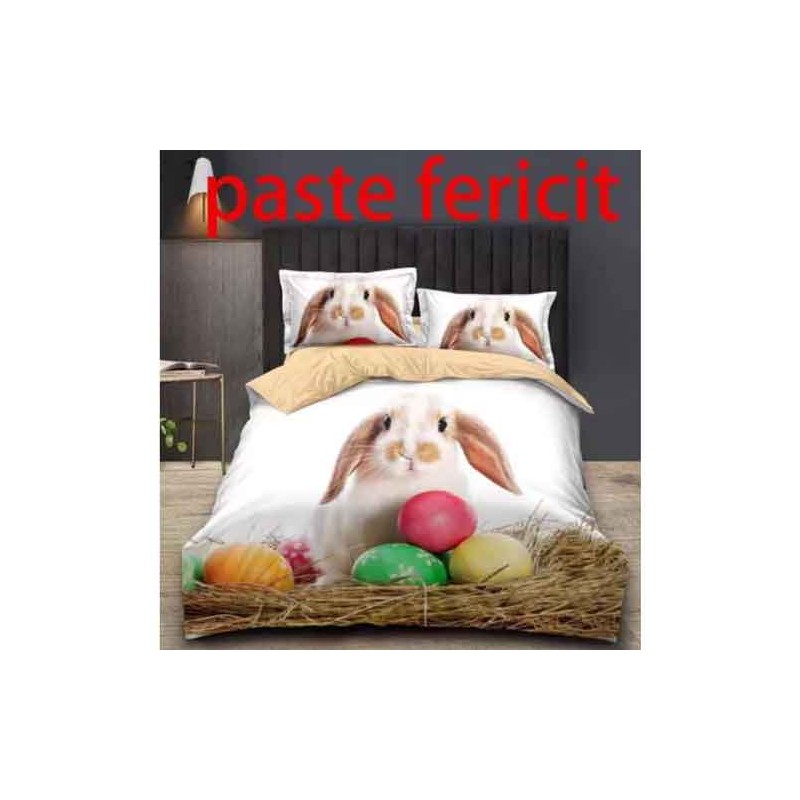 Lenjerie pat finet 6 piese Iepuras cu oua de Paste