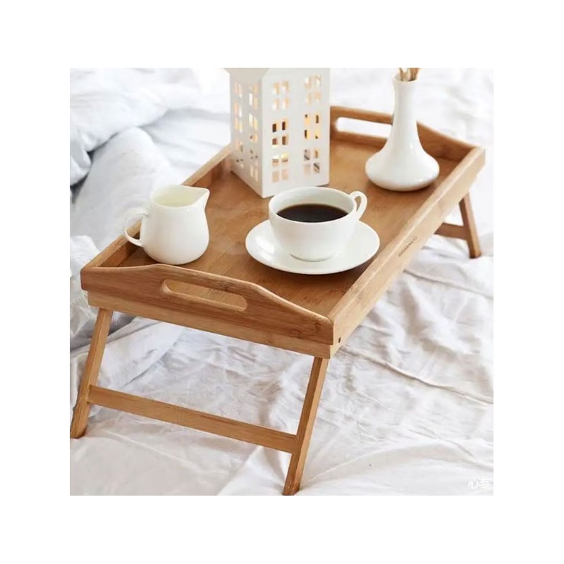 Tava de servit la pat cu design clasic, picioare ajustabile pliabile si manere confortabile. Picioarele se pliaza in partea de jos daca doriti sa utilizati tava pe masa.Tava de bambus cu picioare combina trei functii - poate fi folosita ca o masa pentru a oferi un mic dejun romantic in pat, o masa pentru un laptop sau o tava standard pentru transportul veselei. Totul a fost fabricat din lemn natural de bambus , care este foarte rezistent la tot felul de deformari si temperaturi ridicate.