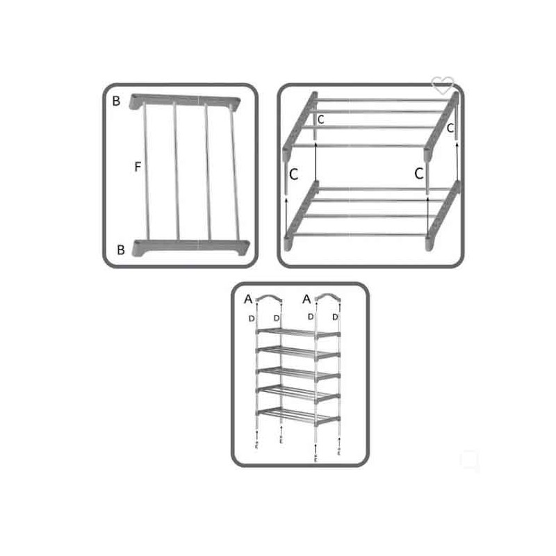 Suport depozitare pantofi, cu 5 rafturi, din tevi de fier galvanizat, usor de asamblat si foarte practic.