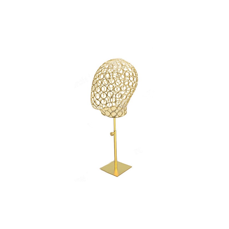 Cap manechin metalic, de culoare aurie, cu suport metal. Inaltime reglabila: intre 46-56 cm. Disponibil atat in varianta dama (circumferinta 56 cm.) cat si in varianta barbat (circumferinta 58 cm.)
