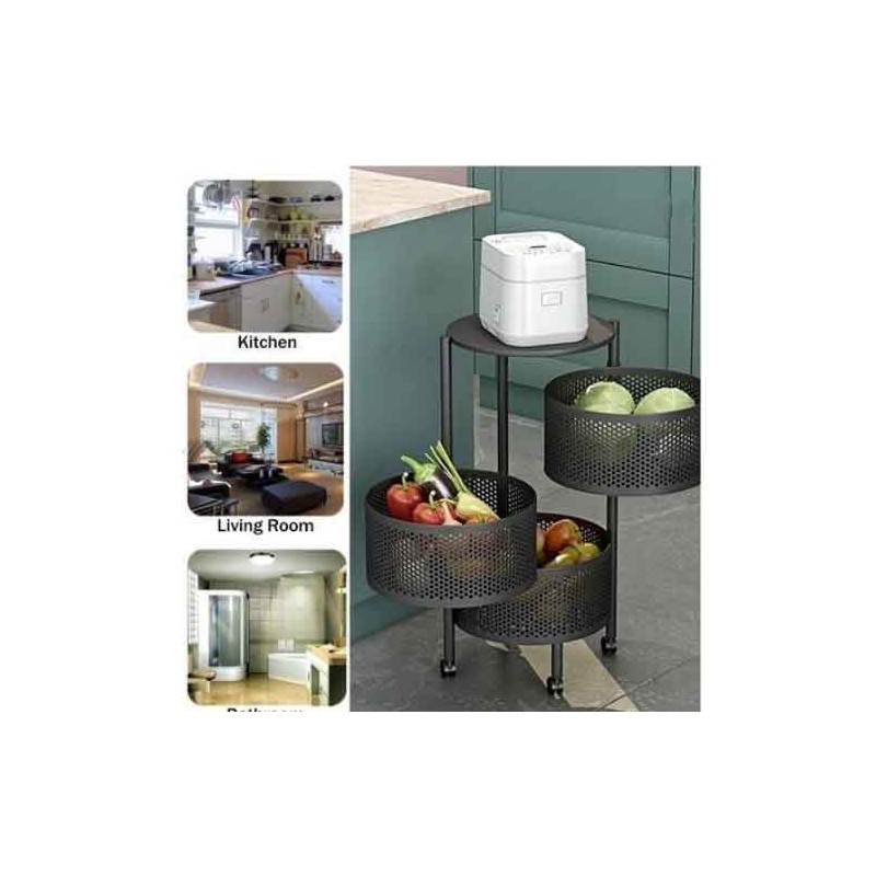 Etajera metalicape roti cu 3 rafturi rabatabile
